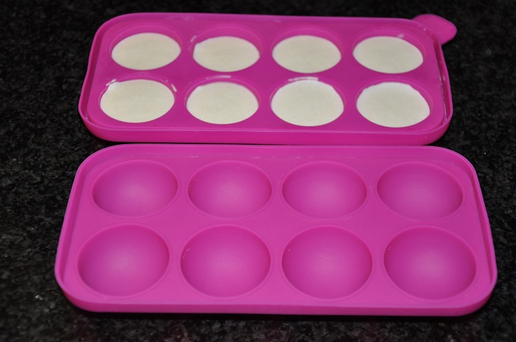 4. Rellenar con la crema de queso unos  moldes de silicona con forma de semiesfera pequeña